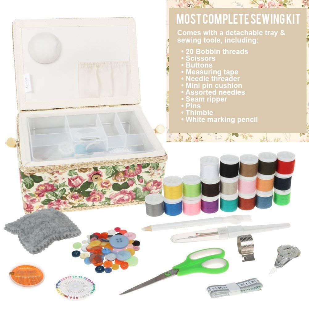 Amazon Com Sewing Basket With Accessories Sewing Storage And Organizer With Complete Sewing Kit Tools Wooden Sewing Box With Removable Tray And Tomato Pincushion For Sewing Mending Beige